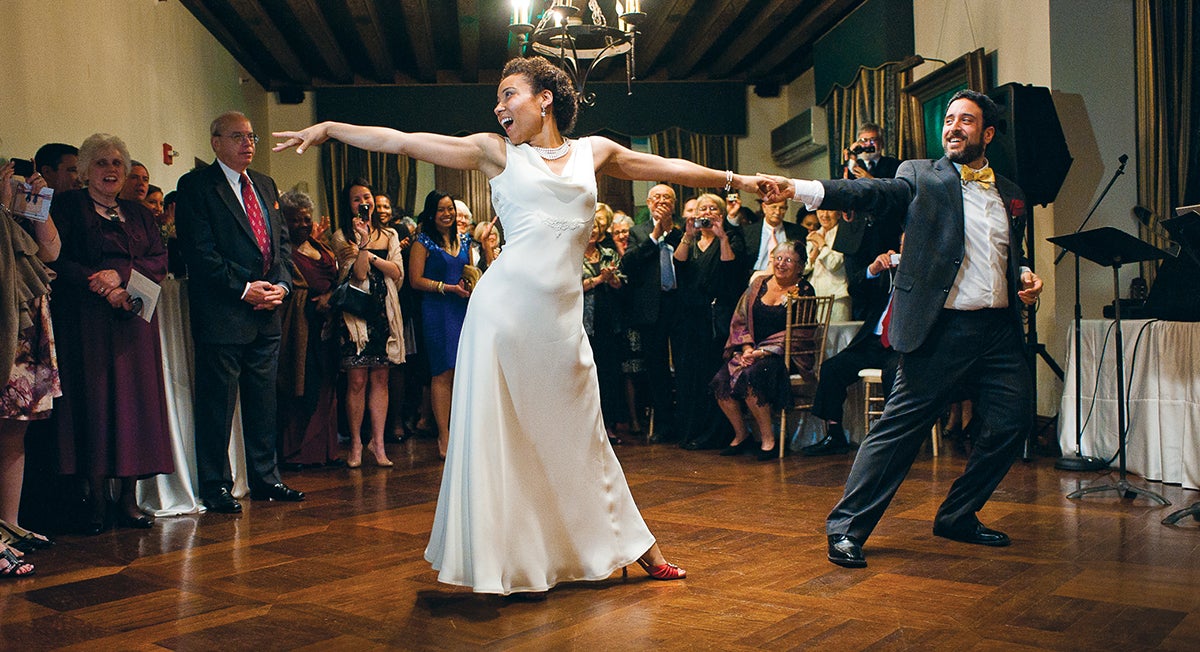 Heather came around, of course, and just over a year after that first date the two were engaged. For their wedding, Heather and Allan chose the MIT Endicott House in Dedham — a venue they fell for after taking a cooking class together there. Inspired by the estate’s history, the couple planned a ’30s-themed celebration complete with old-school bow ties and newsboy caps for Allan’s four groomsmen, who ended up playing a big role in the ceremony.